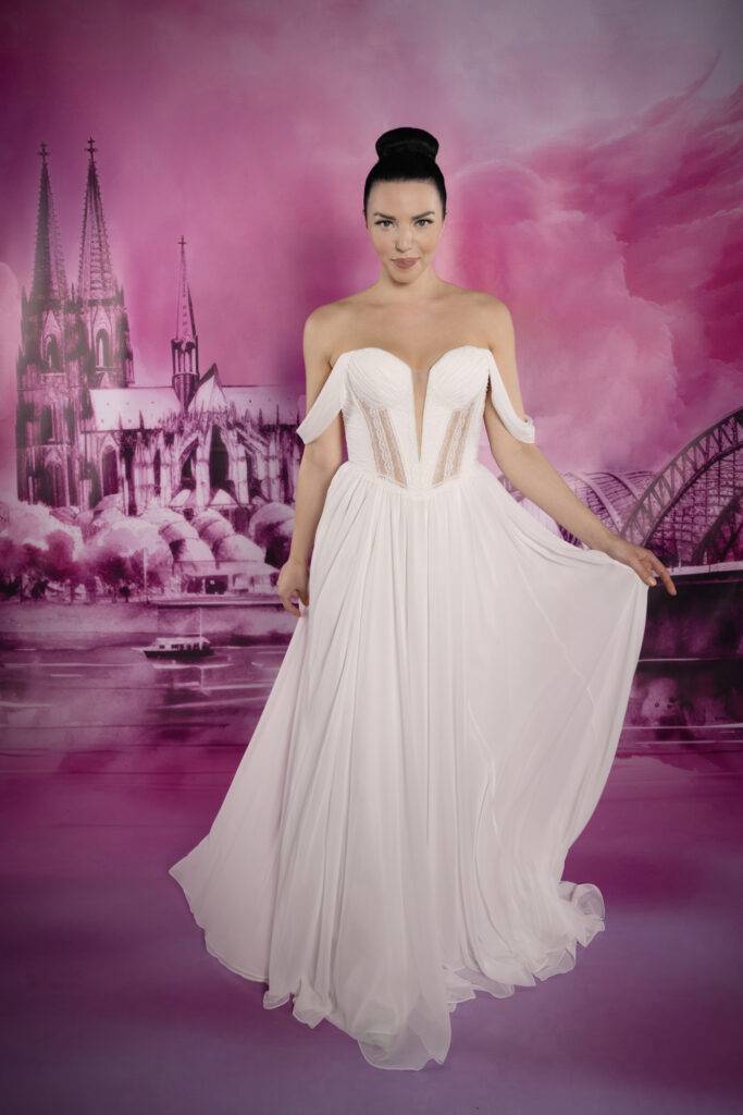Die Designerin Vivian Wonder präsentiert mit ihrem „wondervollen“ Label mit Sitz in Köln, ins Leben gerufen durch Sebastian Mörth (bekannt aus „Zwischen Tüll und Tränen“), neben einer Reihe klassischer, sommerlicher und exklusiver Designs vor allem auch für Curvy-Bräute aufregende und elegante Kleider.